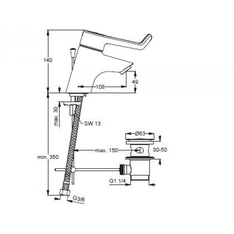 IDEAL Standard CERAPLUS armatúra umývadlová s predĺženou ovládacou pákou 180 mm B8219AAArmatúra s flexibilnými hadicami SPX as odtokovou garnitúrou špeciálny perlátor s poistkou proti odcudzeniu s laminárne reguláciou prietoku (regulácia prúdu vody bez vzduchu).