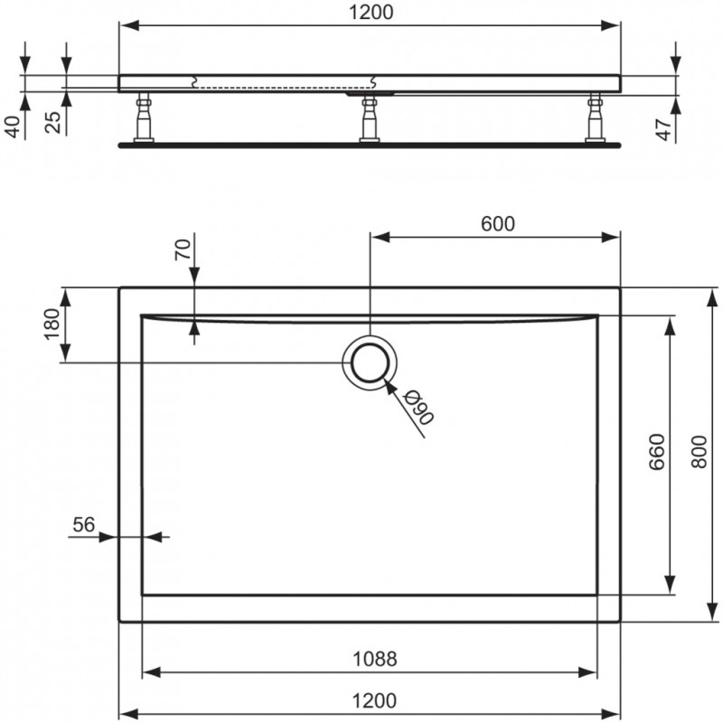 Ultra Flat obdĺžniková sprchová vanička zo sanitárneho akrylátu . Vyrobené podľa DIN 14527 . Vonkajší plášť vystužený skleným vláknom . Spevnený rám a dno vaničky . Odpad priemer 90 mm. Montáž - nohy k sprchovej vaničke a MEPA set .