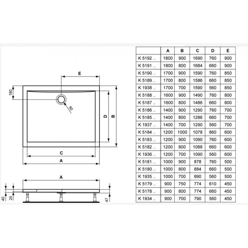 IDEAL Standard ULTRA Flat sprchová vanička akrylátová obdĺžniková 100 x 80 x 4 cm K518101Priemer odpadu: 90 mm.