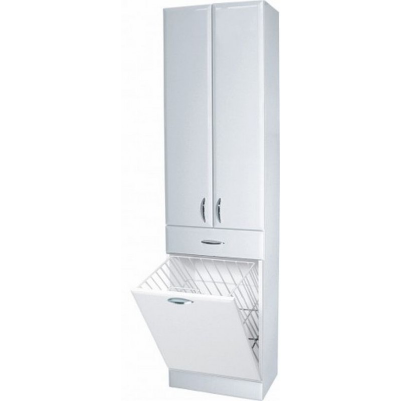 INTEDOOR AZZURRA vysoká kúpeľňová skrinka na sokli AZSV50K/63Vysoká kúpeľňová skrinka na sokli, s jednou zásuvkou, s košom na prádlo, za hornými plnými dvierkami dve staviteľné, jedna pevná polica. Túto skrinku môžete objednať v prevedení Klasik / Variant alebo Azzurra, líšia sa len úchytkami. Venujte tomu pozornosť pri voľbe série.