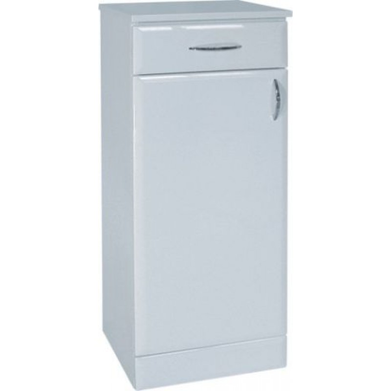 Kúpeľňový nábytok - nízka kúpeľňová skrinka s plnými dvierkami, jednou zásuvkou, na sokli, ľavá. Túto skrinku môžete objednať v prevedení Klasik/Variant nebo Azzurra, líšia sa len úchytkami. Venujte tomu pozornosť pri voľbe série.