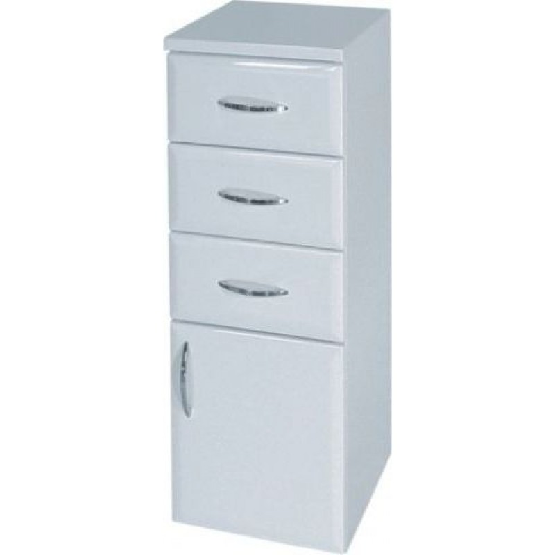 Kúpeľňový nábytok - nízka kúpeľňová skrinka závesná s plnými dvierkami, tromi zásuvkami, pravá.