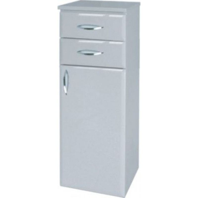 Kúpeľňový nábytok - stredná kúpeľňová skrinka s plnými dvierkami, závesná, pravá, s dvomi zásuvkami, za plnými dvierkami jedna staviteľná polica. Túto skrinku môžete objednať v prevedení Klasik/Variant nebo Azzurra, líšia sa len úchytkami. Venujte tomu pozornosť pri voľbe série.