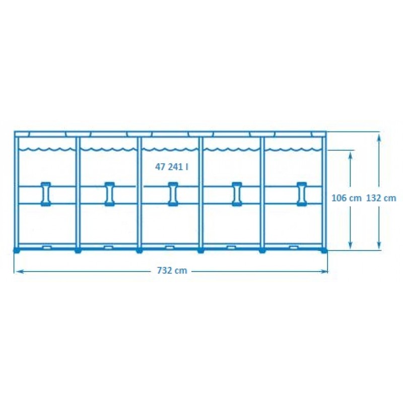 INTEX Bazén Metal Frame Pool Set 732 x 132 cm, s filtráciou a schodíkmi 28262NPNie je nad bazény s kovovou konštrukciou značky INTEX - jednoduchá montáž, robustné prevedenie a dlhodobé používanie, to všetko ponúka tento luxusný bazén. Pozinkovaná konštrukcia s práškovým nástrekom zaisťuje vysokú odolnosť. Tento bazén o veľkosti priemer 732 x 132 cm garantuje osvieženie, zábavu a dobrú náladu pre celú rodinu. Objem vody pri naplnení z 90% je 47.241 l, čas montáže ca. 30 minút. Optimálnu filtráciu vody zaručuje kartušová filtrácia, ktorá je súčasťou balenia. Prednosťou filtrácie je nielen výborný výsledok filtrovania, ale tiež to, že obsahuje všetky diely potrebné na zapojenie. Krycia plachta a zemný plachta zaistí dodatočnú ochranu Vášho bazéna a znižujú mieru jeho znečistenia. S bazénom dodávané schodíky predstavujú pohodlný vstup a výstup z neho.