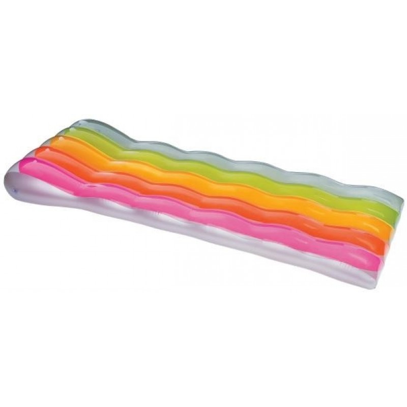 Dúhové nafukovacie lehátko s jedinečným vlnkovitým dizajnom a zabudovaným vankúšom pre perfektné vodné relax.* Rozmery: 191 × 81 cm