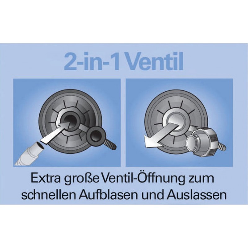 - Ventil 2v1 s extra širokými otvormi pre rýchle nafúkanie a vypustenie