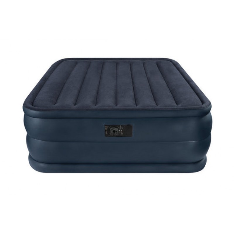 INTEX Nafukovacia posteľ Raised Downy Blue Queen 230 V 66718Nafukovacia posteľ Raised Downy Blue Queen, veľká 152 x 203 x 56 cm, s integrovaným vzduchovým čerpadlom 230 V a výškou matraca 56 cm ponúka Vašim hosťom veľkorysý a pohodlný pôžitok počas spánku. Kvalitatívne otestovaná, 0,53 mm hrubá, vodotesná a vločkovaná horná strana ako aj 0,38 mm hrubé vinylové dno resp. vinylová bočná stena sa starajú o príjemné a predovšetkým stabilné použitie. Dodanie sa realizuje vrátane tašky na nosenie.