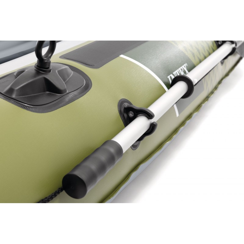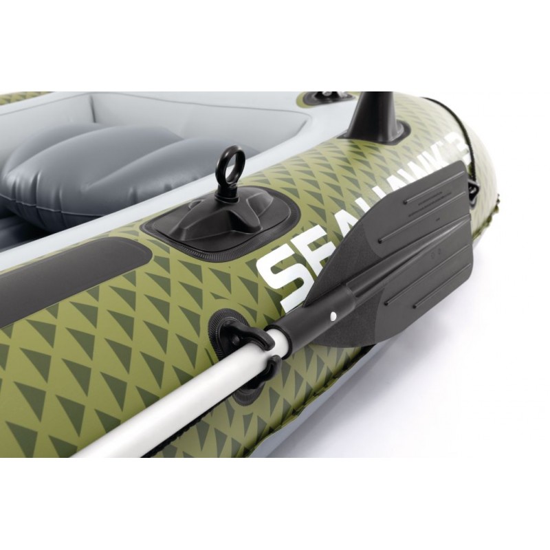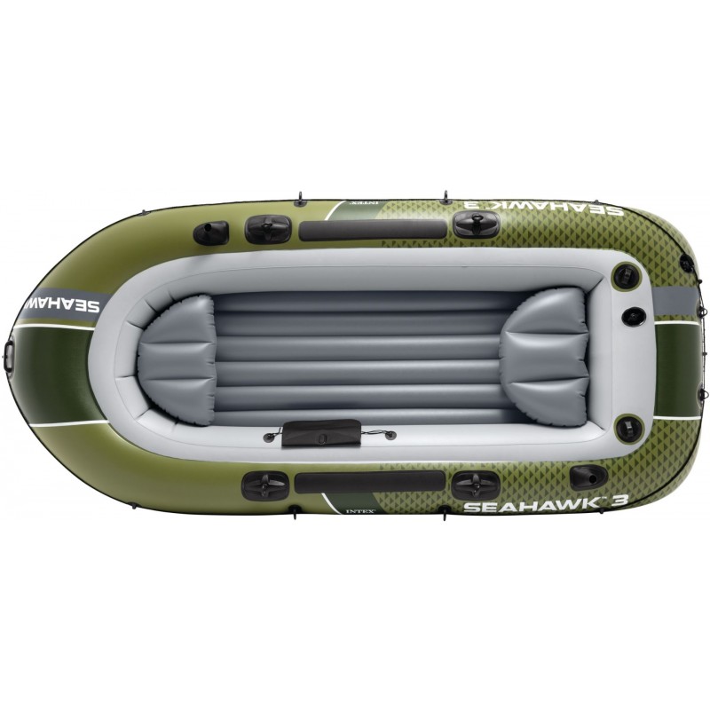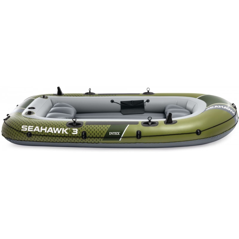 Nafukovací čln Intex Seahawk 3 je ideálnou voľbou na rybolov, rekreačné plavby aj oddych na vode. Vďaka trom vzduchovým komorám vrátane vnútornej bezpečnostnej komory poskytuje vyššiu bezpečnosť a stabilitu na jazerách, riekach aj pri mori.