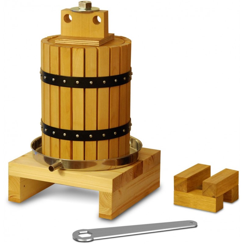 S objemom koša 15 litrov a výťažnosťou okolo 50% už zvládnete narobiť dostatok šťavy pre celú rodinu. Výhodou tohto lisu je vedenie prítlačnej dosky na skrutkovici, čo zamedzuje borcení prítlačnej dosky pri lisovaní. To sa hlavne prejavuje pri lisovaní múčnych jabĺk. Základňa lisu je vyrobená z masívnej dosky hrúbky 40 mm, prostredná lamela v mieste ukotvenia skrutkovice je z tvrdého jaseňového dreva. Lamely koše sú rovnako z tvrdého jaseňového dreva. Skrutkovice je z nerezu.• Rozmery: 33 x 33 x 60 cm