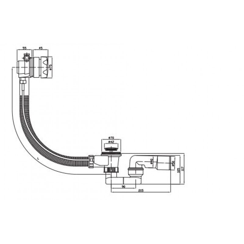 Jika Automatická vaňová výpust s napúšťaním vrátane vaňového sifónu, chrómAutomatická vaňová výpust s napúšťaním vrátane vaňového sifónu 40/50, dĺžka 550 mm, plastové telo prepadu