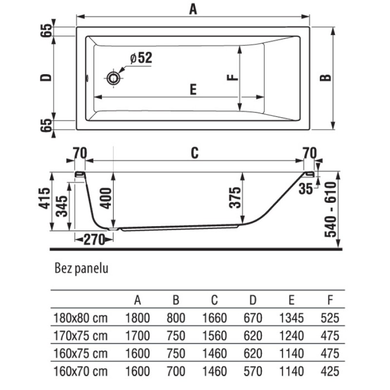 Jika CUBITO Vaňa akrylátová 170 x 75 cm, bez podpierbez podpier