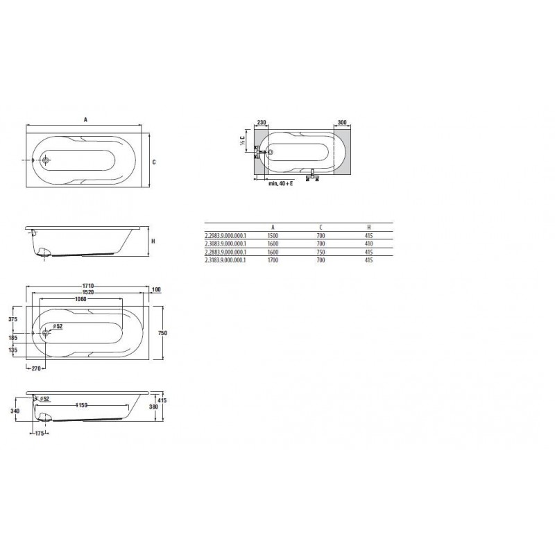 - Pro odeslání do Česka navštivte Jika LYRA vana 160x70 cm, včetně podpěr H2308390000001