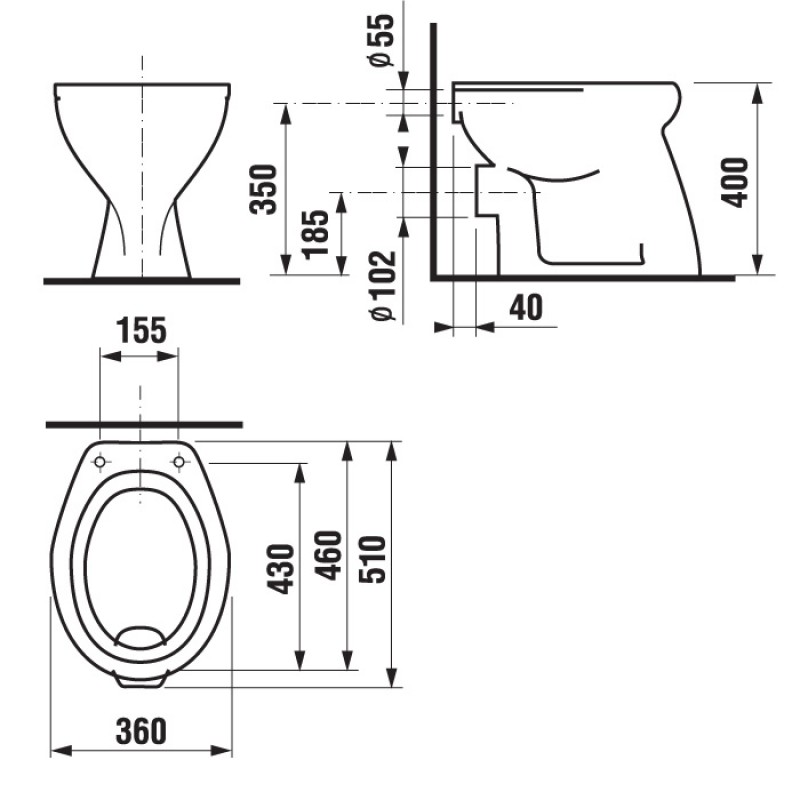Jika ROMAN Stojaci klozet, ploché splachovanie, vodorovný odpadRozmery výrobku: