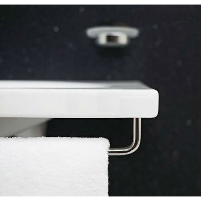 Praktický čelný držiak k umývadlu Tigo 80 cm je možné inštalovať bez umývadlovej skrinky. Nerezový držiak na uteráky je nielen praktickým vylepšením kúpeľne, ale aj pekným dizajnovým detailom. Umývadlá s držiakom možno doplniť policou, ktorá obzvlášť podčiarkuje čisté línie modernej série Tigo.