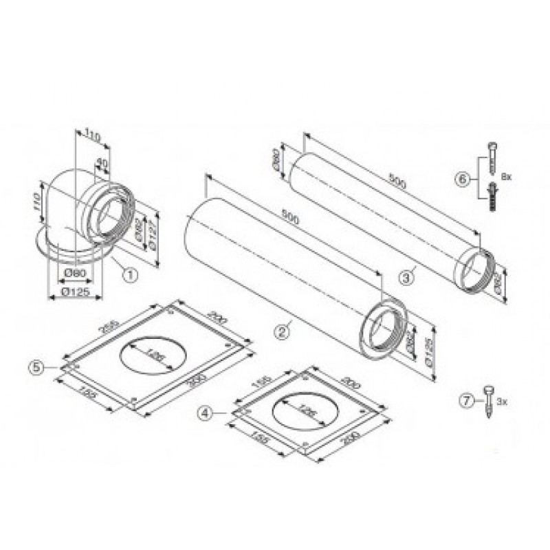 Junkers AZB 927 - Souprava vedení odtahu ke kom. šachtě, bez reviz. otvoru 7719002860Obrázky sa môžu líšiť od originálneho produktu/položky.