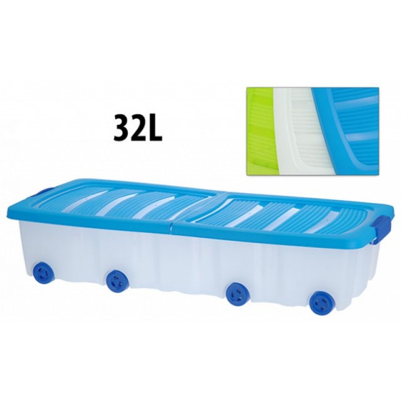 KAISERHOFF Úložný box pojazdný s klip vekom 32 l plastový 79x38x17 cm zelenýPlastový úložný box na kolieskach. Priehľadný s farebným klip vekom (modrá, zelená, biela). Otvárateľný z dvoch strán. 79x38x18 cm, 32 l