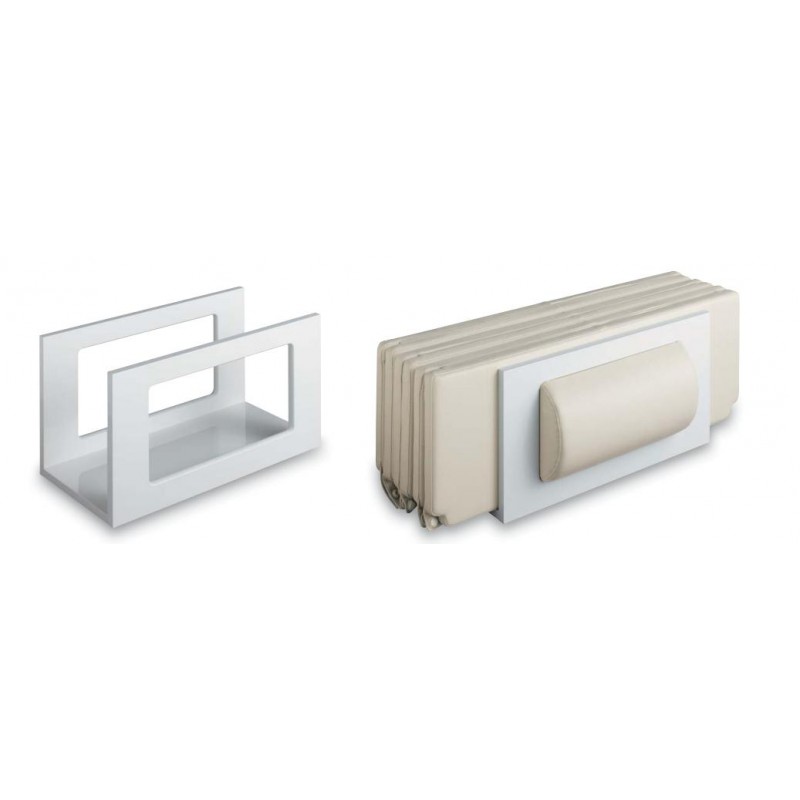 Pozostáva zo šiestich prvkov, z ktorých dva sú vždy navzájom pevne spojené. Tak je možné relaxačné lehátko úplne rozdielne používať vo forme troch samostatných dosiek: ako odkladaciu poličku, zatiaľ čo človek leží vo vani, alebo ako ležadlo pre relaxáciu. Leží Ak tieto tri dosky spoločne na vani, možno ich ľahko navzájom spojiť tak, aby vznikla veľká stabilný plocha, ktorá sa nemôže sesmeknout. Ďalšie spojenie medzi relaxačným lehátkom a vaňou je možné umiestnením pripevňovacích patentky na vaňu. Týmto spôsobom je možné bez problémov relaxačným lehátkom opatriť aj už zabudované vane.