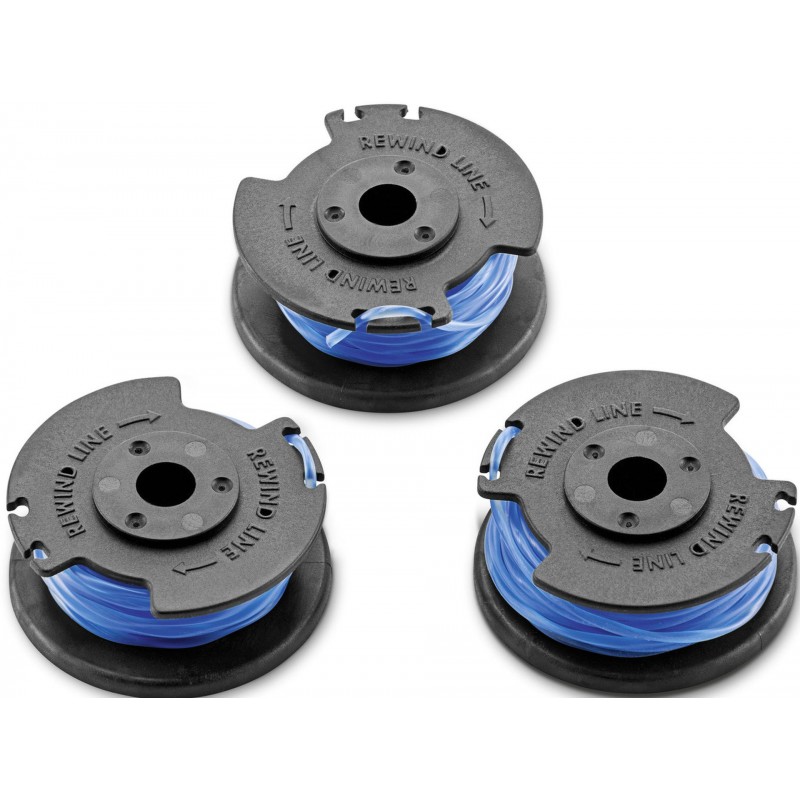 Cievka v balení po troch kusoch s zapletených strunou zaisťuje čisté výsledky na zle prístupných miestach. Je vhodná pre všetky strunové kosačky 18 V Kärcher Battery Power.