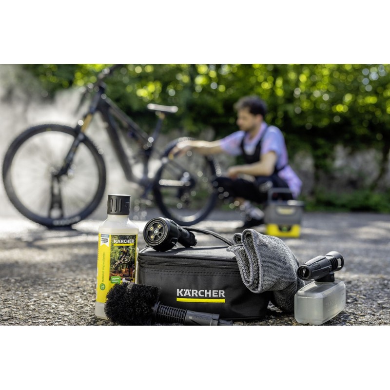 Koncentrát je ideálny na použitie s penovými tryskami strednotlakových a nízkotlakových čističov Kärcher (napr. modely OC a KHB) aj na ručnú aplikáciu. Z jedného balenia je možné pripraviť až 2 litre čistiaceho prostriedku a umožňuje opakované dopĺňanie fľaše s rozprašovačom. Vhodný pre všetky typy bicyklov vrátane elektrobicyklov, horských aj cestných modelov.