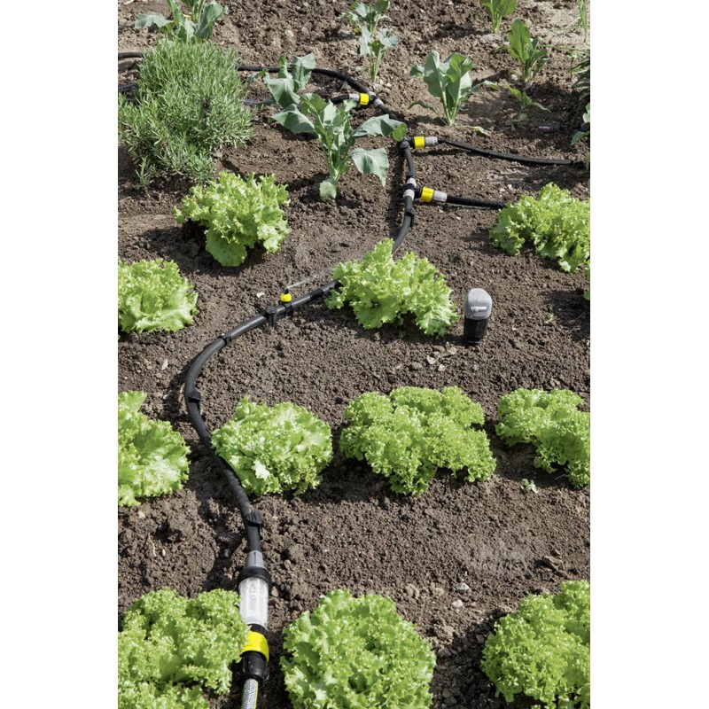 Redukčný tlakový ventil s filtrom je súčasťou systému Kärcher Rain System®. Znižuje vstupný tlak, ktorý má výšku max. 12 bar, na výstupný tlak 4 bar a umiestňuje sa medzi prívodnú hadicu a Kärcher Rain System®. Časticový filter chráni systém pred čiastočkami špiny. Filtračná vložka sa dá bez problémov vybrať a vyčistiť. Na vstupnej strane sa nachádza prípojka na vodovodný kohútik, ktorá je kompatibilná so všetkými známymi klik systémami. Na výstupnej strane je prípojka pre hadicu alebo kvapkaciu hadicu Kärcher Rain System®. Hadice sa priamo nasúvajú alebo sa bez náradia montujú pomocou prevlečnej matice. Efektívny zavlažovací systém Kärcher Rain System® v sebe spája výhody mikro-kvapkania a bežného zavlažovania. Pracuje s tlakom do 4 bar, dá sa individuálne prispôsobiť takmer každému typu záhrady a perfektne spolupracuje so zariadením SensoTimer pre zavlažovania podľa potreby.