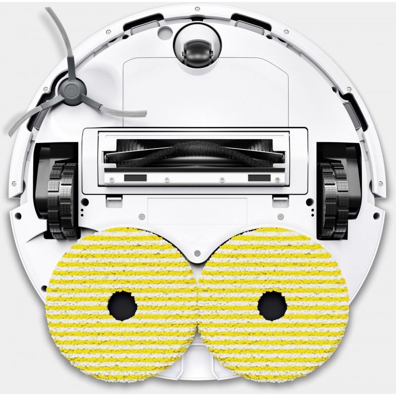 Rotačné mopy efektívne odstraňujú nečistoty aj odolné škvrny. Pri detekcii kobercov sa mopy zdvihnú, čím sa zabráni ich navlhnutiu, a pravý mop sa vysunie pre čistenie okrajov.