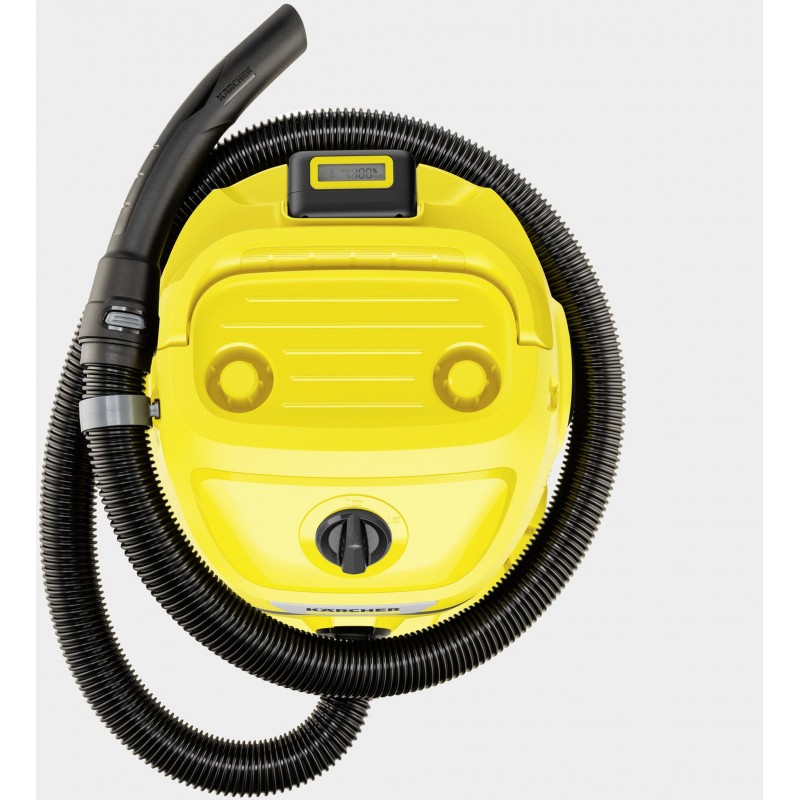 Batériový vysávač na mokré a suché vysávanie WD 2-18 je súčasťou 18 V batériovej platformy Kärcher Battery Power a ponúka maximálnu flexibilitu, kompaktný dizajn a slobodu pohybu. Prístroj dokonale kombinuje 1,8 metra dlhú saciu hadicu a klipsy podlahovej hubice a dokáže behom okamihu odstrániť mokré, jemné aj hrubé nečistoty. Zariadenie je tiež vybavené robustnou a nárazuvzdornou plastovou nádobou s objemom 12 litrov a tiež fleecovým filtračným vreckom. Skladovanie sacej hadice šetrí miesto; jednoducho ho zaveste na hlavu zariadenia. Medzi ďalšie funkcie patrí praktická funkcia fukára pre oblasti, kde nie je možné vysávanie, odkladací priestor na náradie a drobnosti, otočný spínač pre ľahké zapnutie a vypnutie prístroja, ergonomicky tvarované madlo na prenášanie a tiež "Pull & Push" uzamykací systém, ktorý umožňuje ľahké otváranie a zatváranie nádoby. Parkovacia poloha na nárazníku umožňuje rýchle a pohodlné uloženie trubíc a podlahovej hubice pri krátkej prestávke pri práci. Batéria a nabíjačka sú súčasťou balenia.