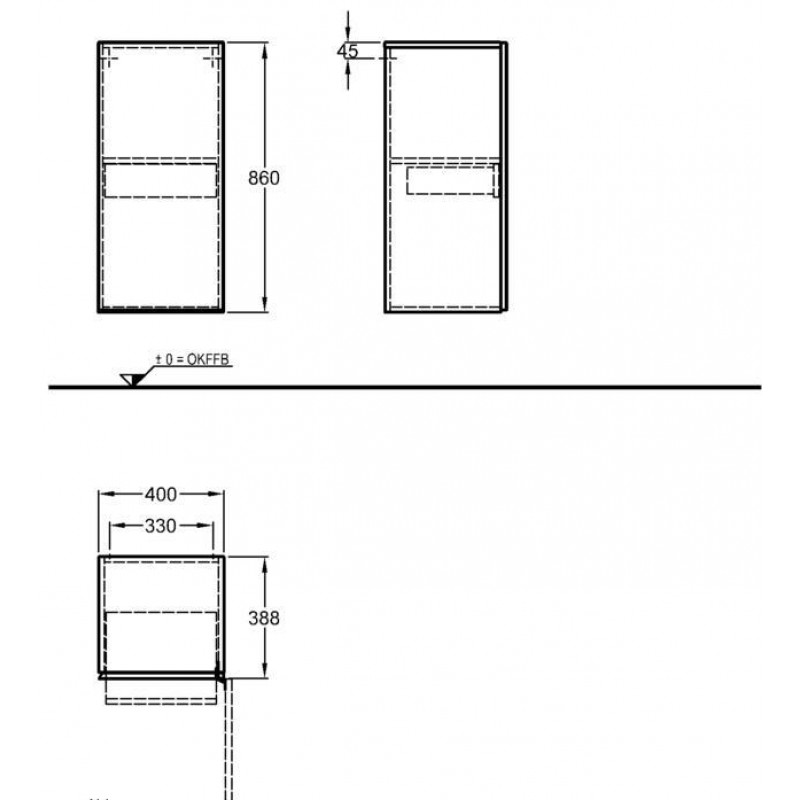 KERAMAG 4U postranné skrinka, závesná 40cm korpus biely, čelná plocha svetlý dub 804041závesná skrinka postranné, nízka