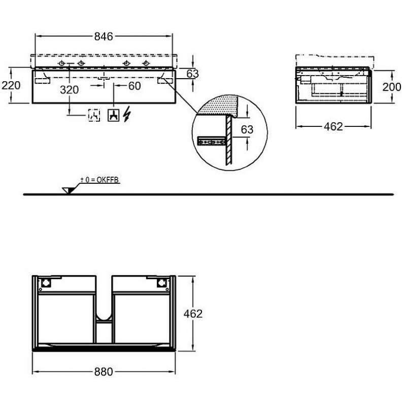 - kombinácia s umývadlami 127090000, 127093000 a s vnútornými organizéry do zásuvky