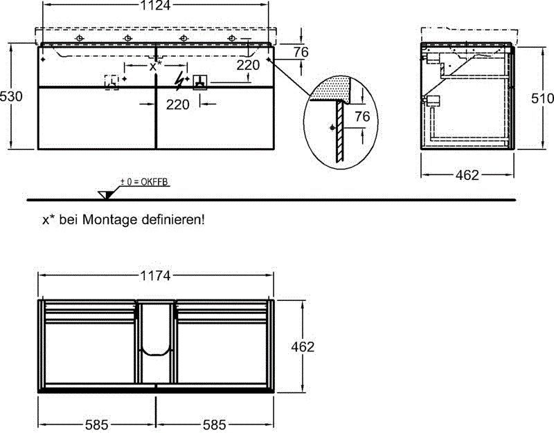 - kombinovateľná s umývadlami 127020000, 27023000, 127025000 a s vnútornými