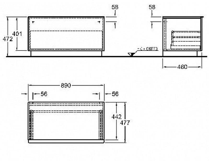 KERAMAG Icon boč.skř.níz.89x47,2 lávovo čierna matná 841091000- 89 x 60 x 47,7 cm