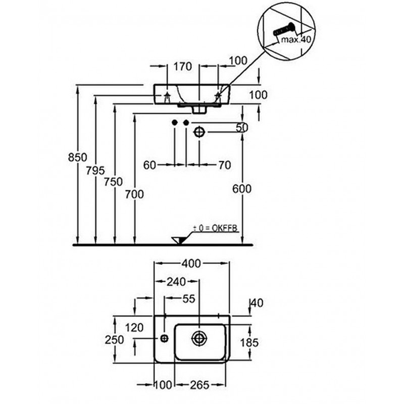 KERAMAG Ren.Nr.1.Comp.umývátko 40x25 s otv.vlevo KT 276240600
