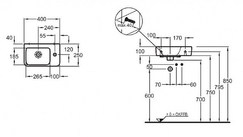 KERAMAG Ren.Nr.1.Comp.umývátko 40x25 s otv.vpravo 276140000- s prepadom