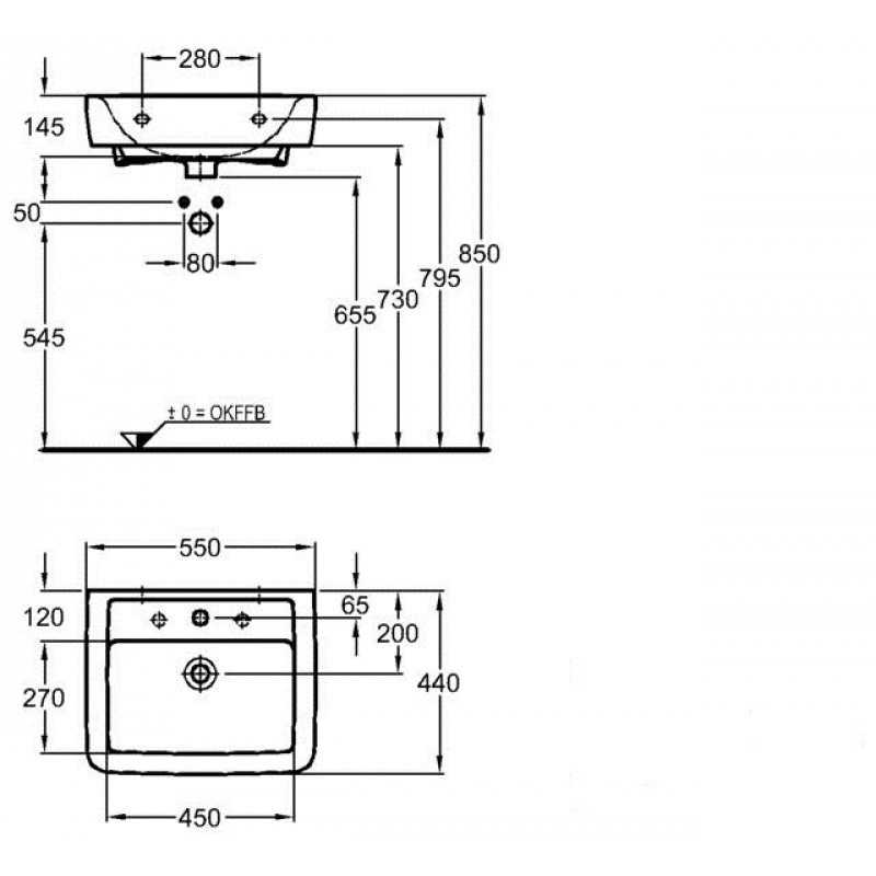 KERAMAG Renova Nr 1 Plan umývadlo s otvorom 55 x 44 cm + KeraTect 222255600umývadlo s prepadom