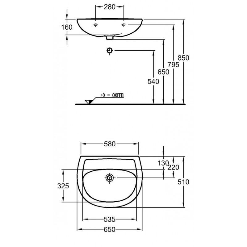 KERAMAG Renova Nr 1 umývadlo s prepadom bez otvoru 65 x 51 cm + KeraTect 223068600umývadlo s prepadom