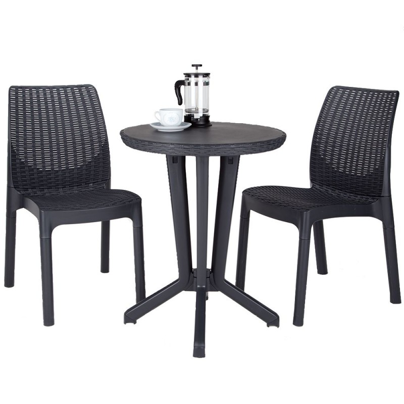 KETER BISTRO balkónový set, antracit 17197990Nábytkový set BISTRO je navrhnutý s ohľadom na pohodlie. Súprava sa skladá z dvoch stoličiek a okrúhleho stola. Nábytok perfektne vyplní malé priestory na balkóne, terase alebo aj v záhrade. Tento produkt sa vyznačuje vysokou životnosťou a odolnosťou voči poveternostným vplyvom a UV žiareniu. Čistenie mäkkou handričkou vlažnou vodou so saponátom.