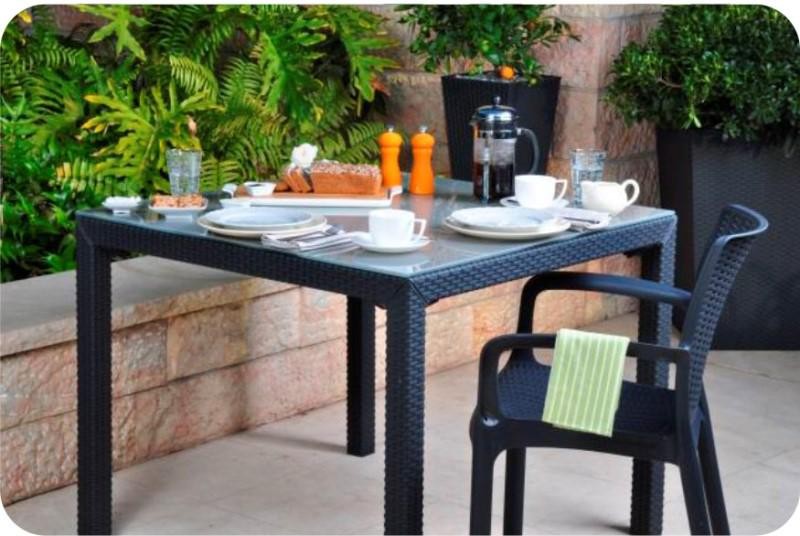 Zaujme predovšetkým svojím prevedením - háčkovaná väzba. Stolička je ľahká a zároveň veľmi stabilná.Tento produkt sa vyznačuje vysokou životnosťou a odolnosťou voči poveternostným vplyvom a UV žiareniu. Čistenie mäkkou handričkou vlažnou vodou so saponátom. Stoličky sú stohovateľné.