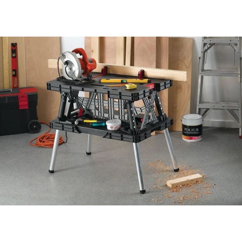 Skladací pracovný stôl Folding Work Table značky Keter je ideálny pomocník pre každého majstra či profesionála – ponúka pevnú konštrukciu, ľahké zloženie behom pár sekúnd a vysokú nosnosť až 453 kg. Perfektný pre prácu doma, v dielni aj na cestách.