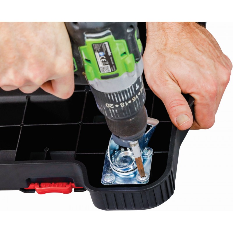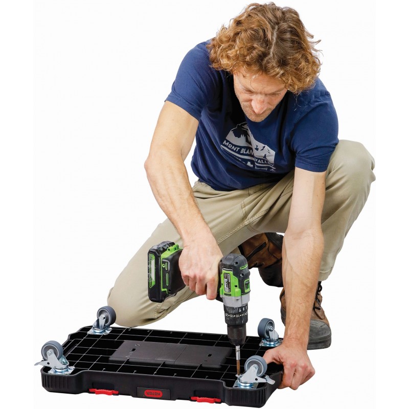 Ideálne pre domáce inštalatérske práce, údržbu auta a ďalšie manuálne činnosti – všetky nástroje máš vždy po ruke a zároveň môžeš ľahko presúvať svoje boxy Stack'N'Roll po dielni.