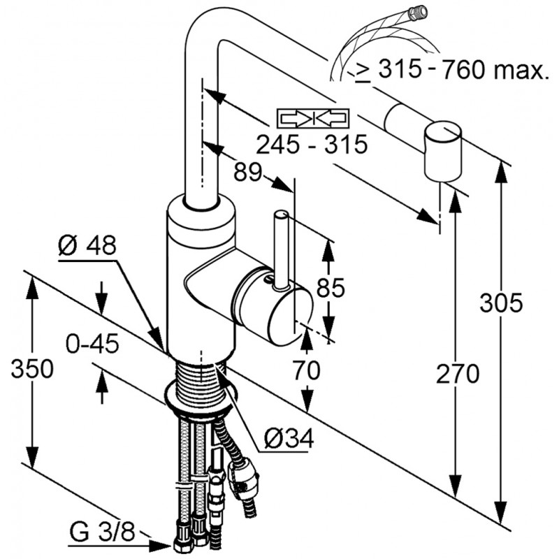 - Otočný (220 °), teleskopický vytiahnuť výtok