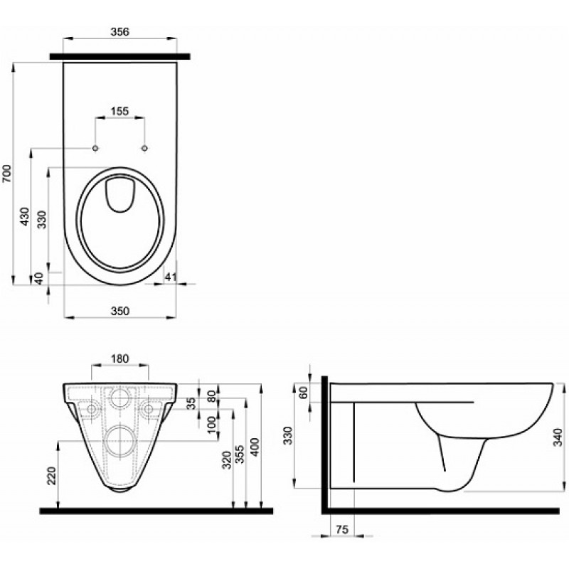 KOLO Nova Pro Bez Bariér klozet závesný s dĺžkou 70 cm, s hlbokým splachovaním, 6 l M33500000- Pre osoby so zníženou pohyblivosťou tela