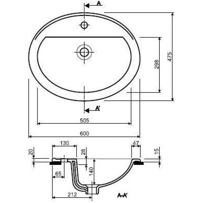 KOLO Nova Top umývadlo zápustné 60 cm, s otvorom pre batériu, s prepadom 1527000- Farebné prevedenie: biela