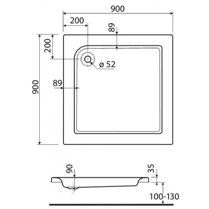 KOLO Standard Plus štvorcová sprchová vanička 90 x 90 cm XBK1590000 KOLO Standard Plus štvorcová sprchová vanička 90 x 90 cm XBK1590000