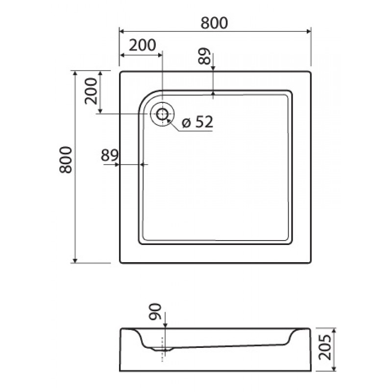 - odtok (priemer): 52 mm