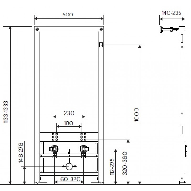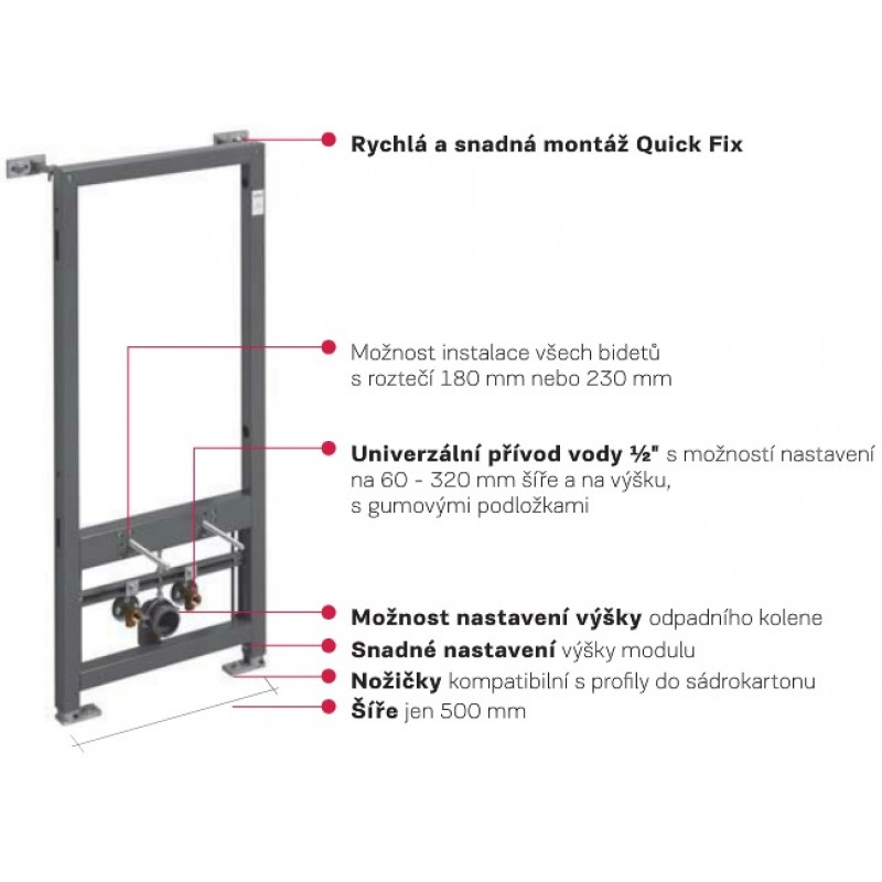 KOLO Technic GT inštalačný modul pre závesný bidet 99403Rozmery: šírka: 50 cm; výška: 113 - 133 cm