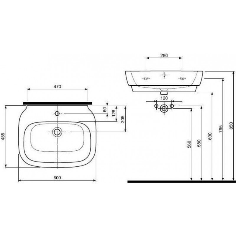 KOLO Varius umývadlo pravouhlé 60x48, 5 cm s otvorom K31161Umývadlo pravouhlé 60 cm, 60 x 48,5 cm, s otvorom, s prepadom, pre kombináciu s polostĺpom K37100.