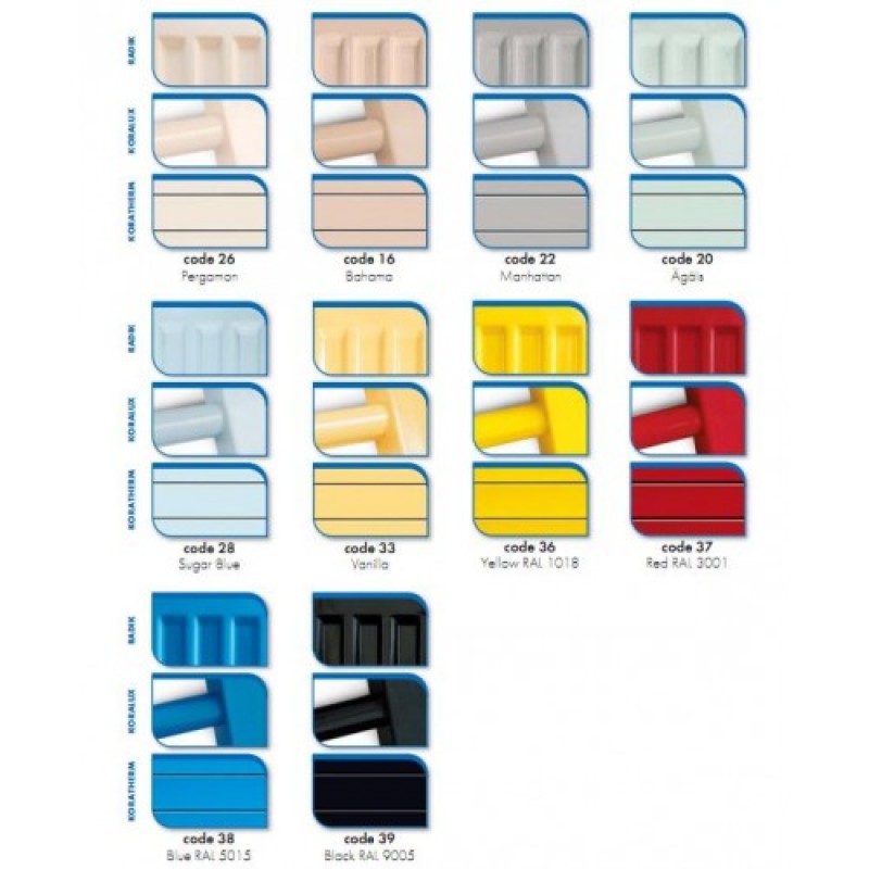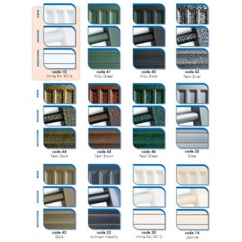 Doskové vykurovacie telesá RADIK sú ponúkané v základnom farebnom prevedení biela RAL 9016 a na objednávku podľa vzorkovníka.