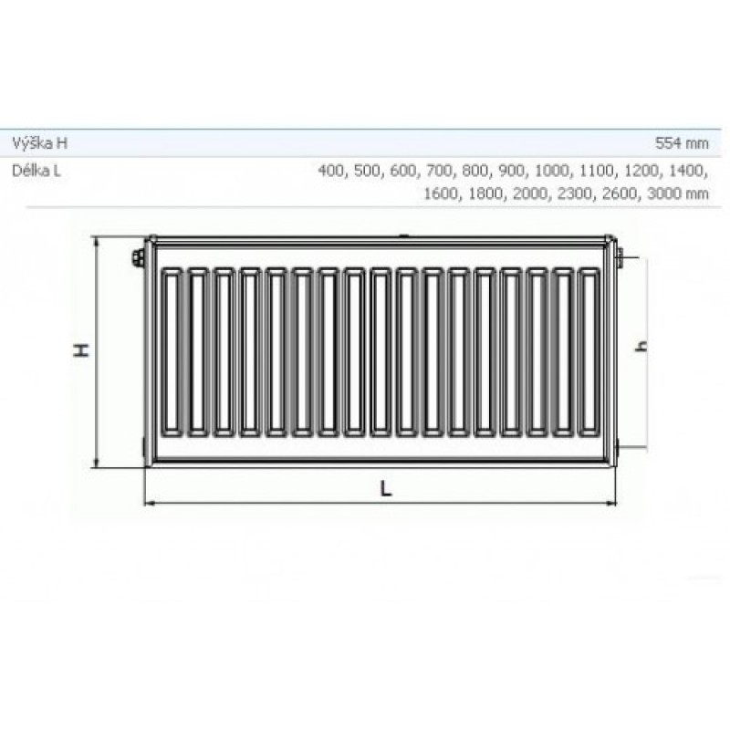 KORADO doskový radiátor typ KLASIK R 21 554/2000 21-055200-R0-10Model RADIK KLASIK - R je doskové vykurovacie teleso v prevedení KLASIK upravené pre rýchlu náhradu článkových liatinových alebo oceľových radiátorov s pripojovacou roztečou 500 mm. Výška H = 554 mm zaručuje jeho bezproblémovú montáž na miesto starého radiátora. Umožňuje ľavé alebo pravé bočné pripojenie na rozvod vykurovacej sústavy a konštrukciou je určené pre vykurovacie sústavy s núteným alebo samotiažnym obehom. Zo zadnej strany sú privarené dve horné a dolné príchytky, radiátory o dĺžke 1800 mm a dlhšie majú navarené šesť príchytiek.