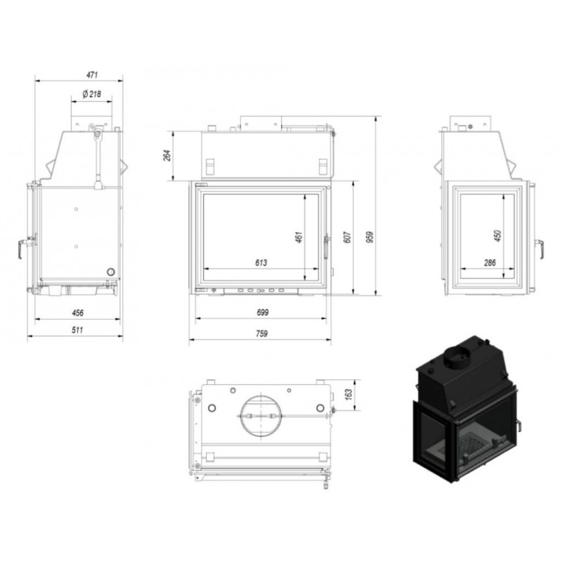 KRATKI AMELIA/PW/BL/24/W krbová vložka teplovodná, ľavé sklo, s chladiacou slučkouVýkon nominálny: 24 kw