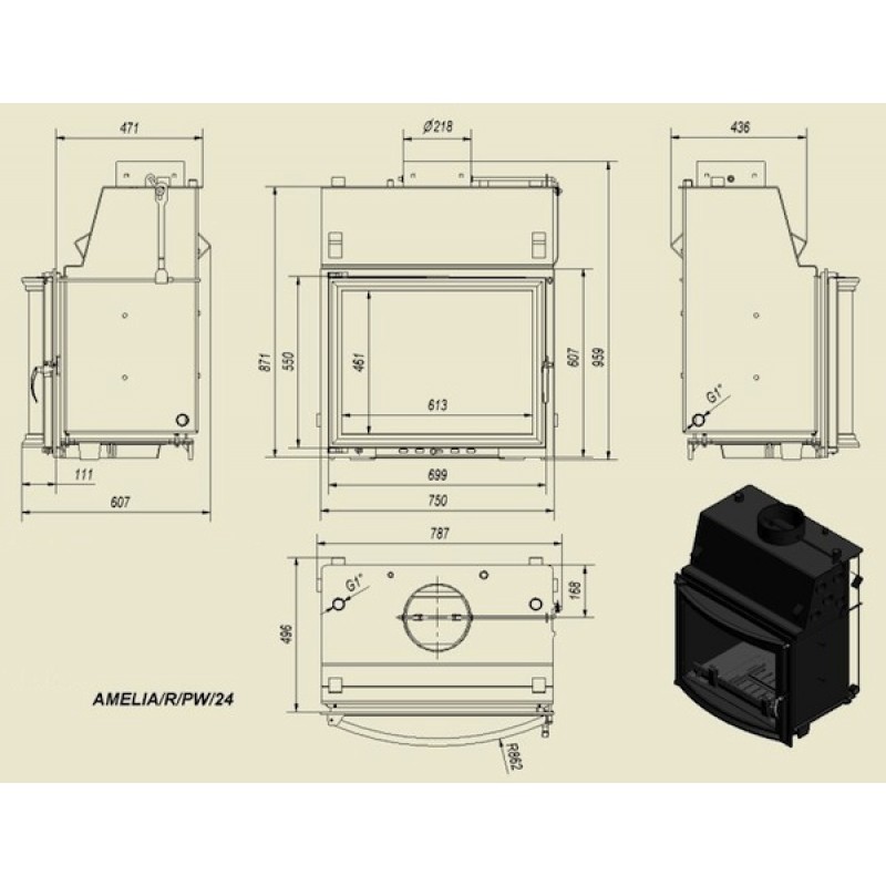 - Pro odeslání do Česka navštivte KRATKI AMELIA/R/PW/24/W krbová vložka teplovodní, obloukové sklo, s chladící smyčkou