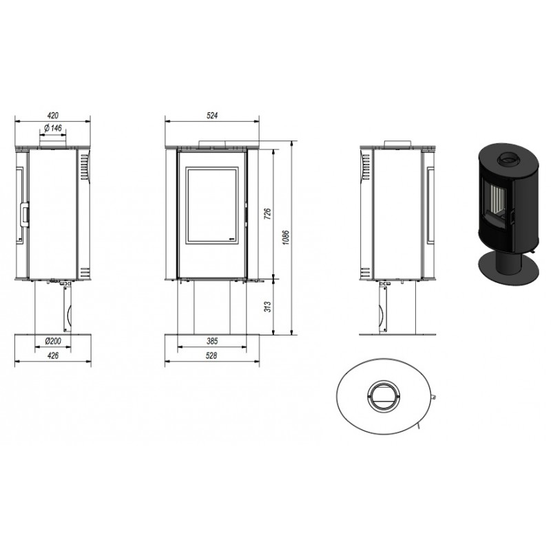 KRATKI KOZA AB SN GLASS 8 kW krbové kachle, oceľ, s nohou KOZA/AB/S/N/GLASSVoľne stojace oceľová pec, posadená na masívne nohe, vybavená jednoduchým dekoratívnym sklom typu Glass, prekrývajúcim celé dvierka.